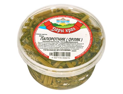 папоротник, закуска из папоротника и маринованную черемшу; излюбленные всеми сибиряками